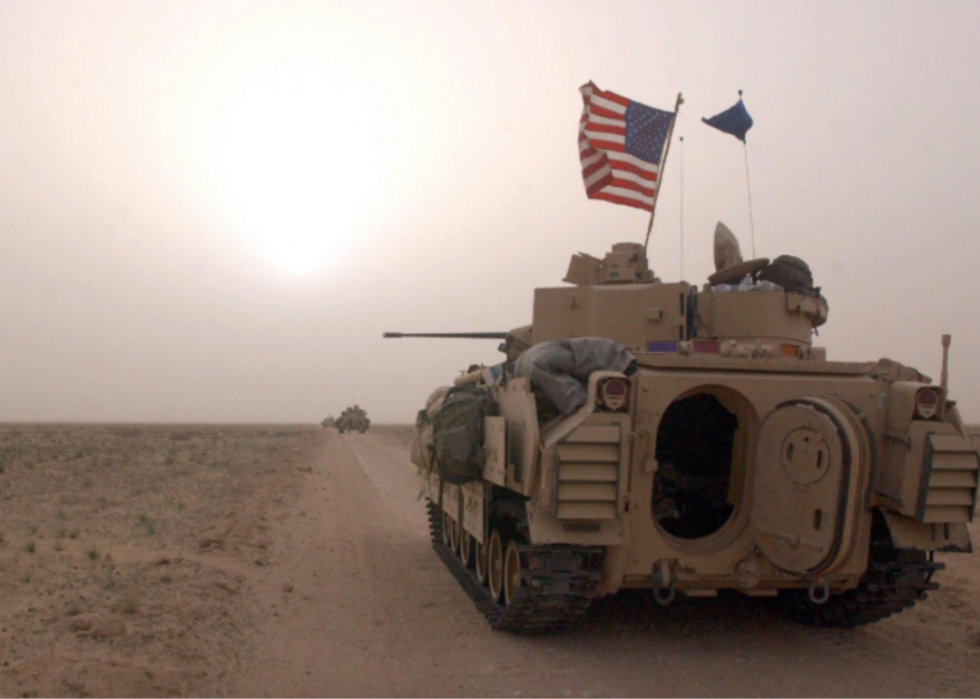 Estados Unidos, Grã-Bretanha e outras nações aliadas invadiram Bagdá em 19 de março de 2003. A Guerra do Iraque durou quatro anos, matando mais de 3.000 soldados dos EUA, ferindo mais de 23.000 e causando mais de 50.000 vítimas civis.