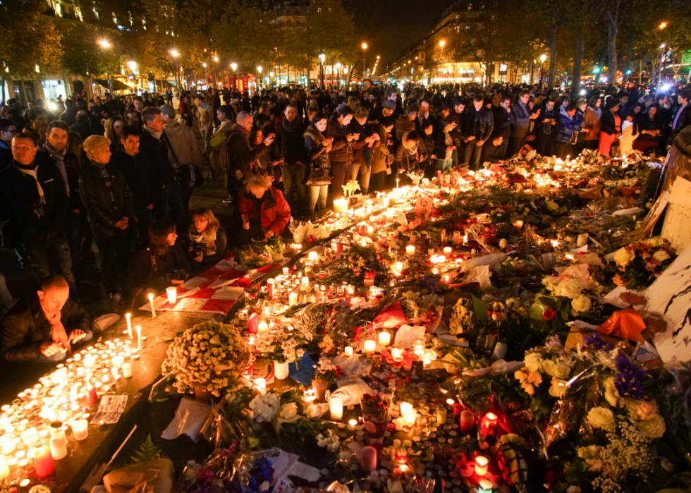 Em 13 de novembro de 2015, terroristas lançaram uma série coordenada de ataques em Paris. Primeiro, os homens-bomba explodiram em um estádio durante uma partida de futebol.